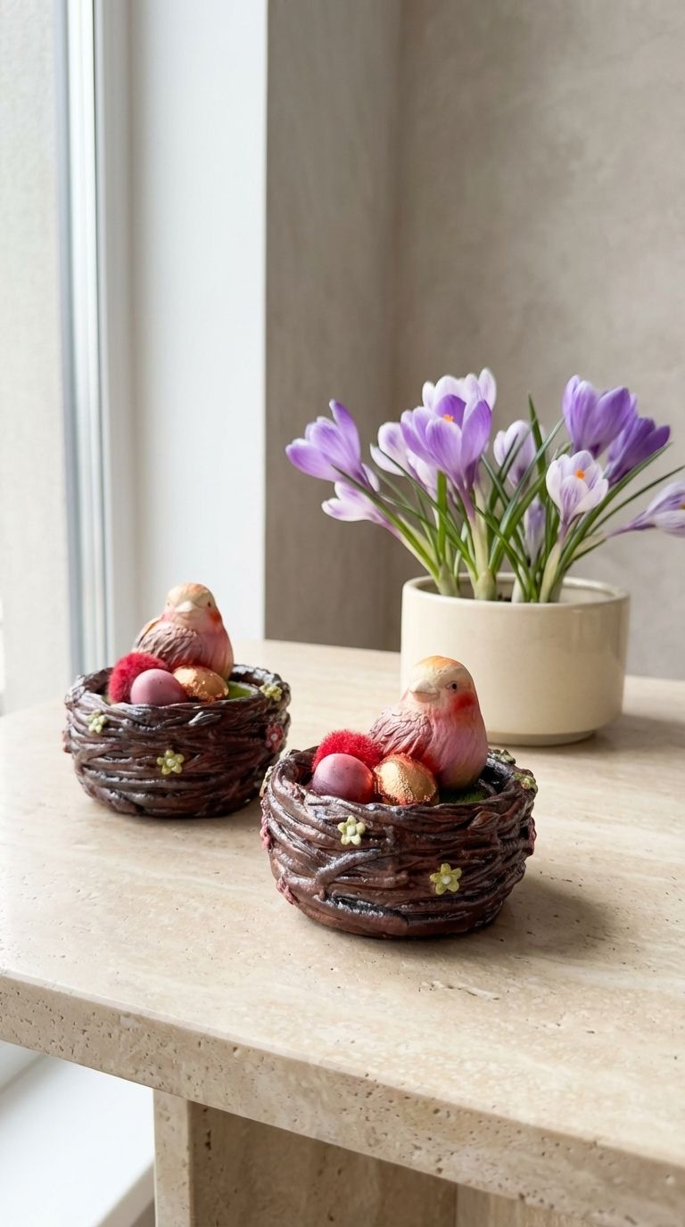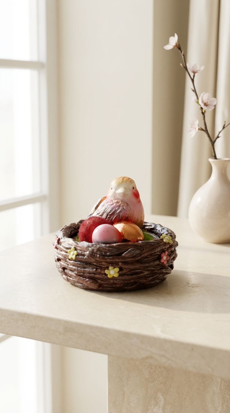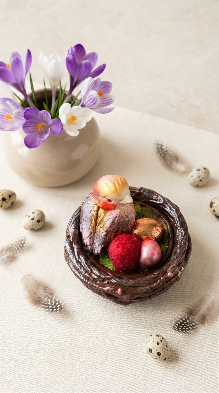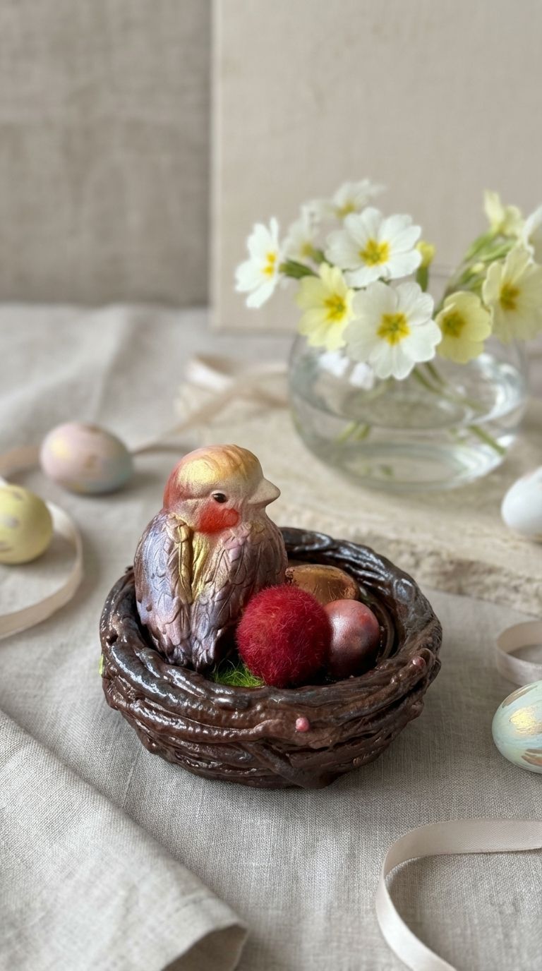 Нежная птичка в гнездышке-шкатулке ручной работы.