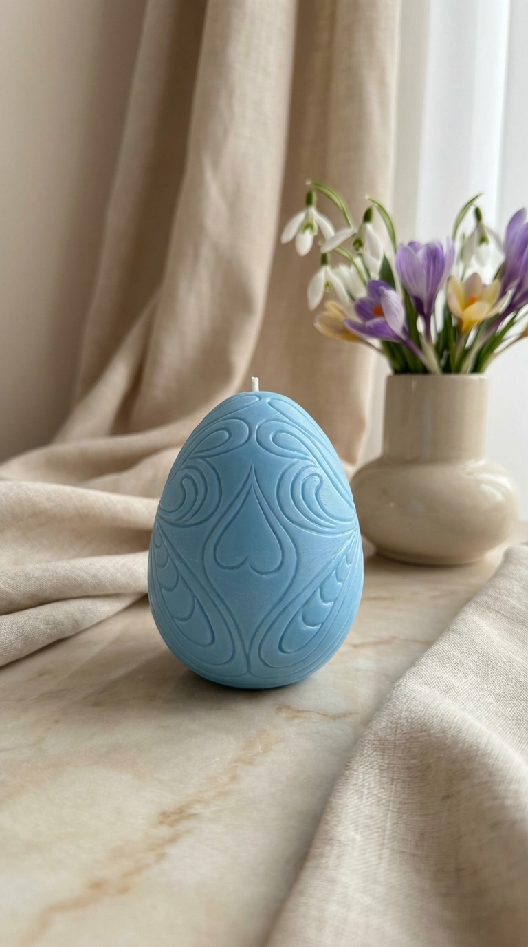 Свеча представлена в небесно-голубом оттенке, но может быть выполнена в других оттенках, а также ароматизирована по Вашему вкусу.
