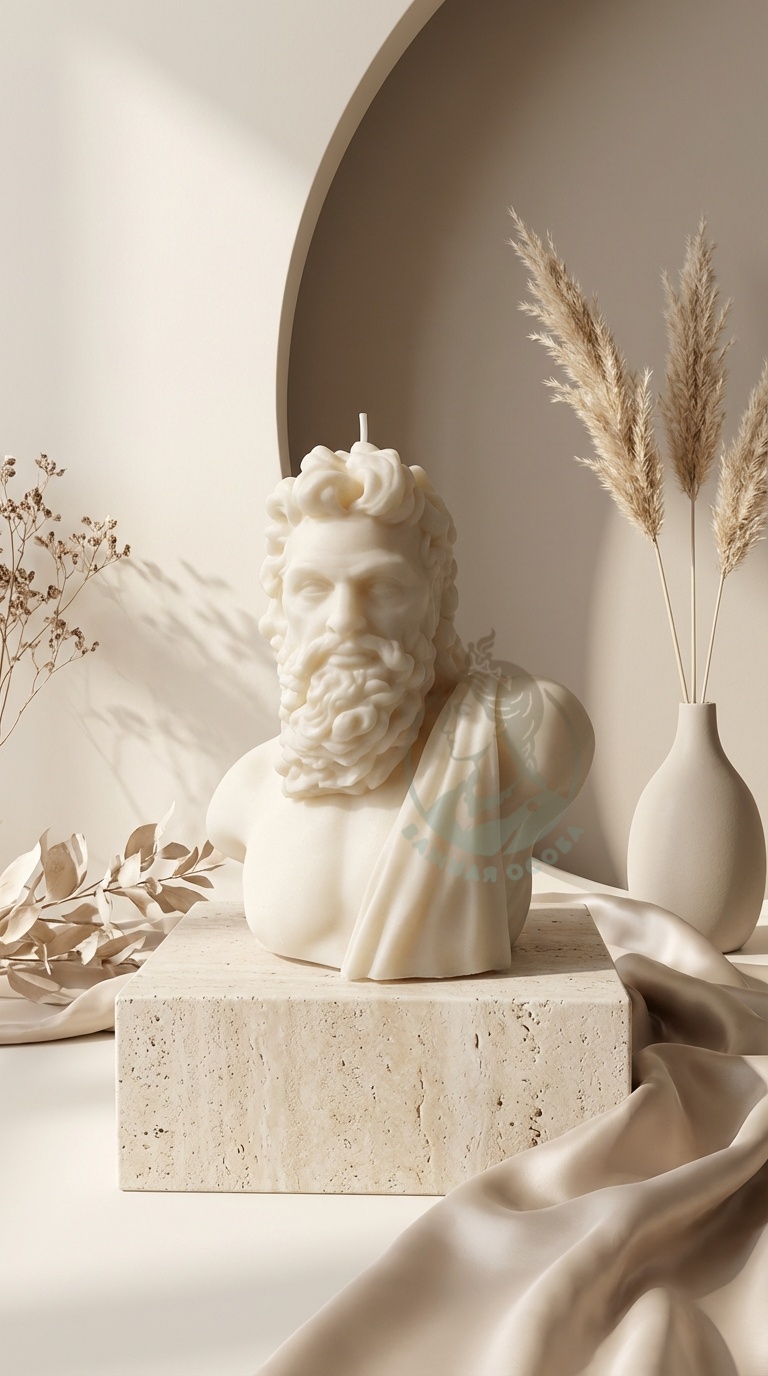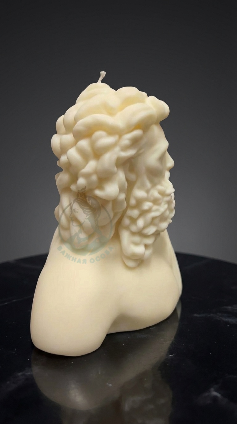 Свеча-скульптура древнегреческого бога-олимпийца, прародителя многих божеств, хитрец и ловелас - пойман и запечатлен нами в воске (три четверти килограмма, девочки!). Этот жаркий громовержец поистине впечатляет своими формами!
